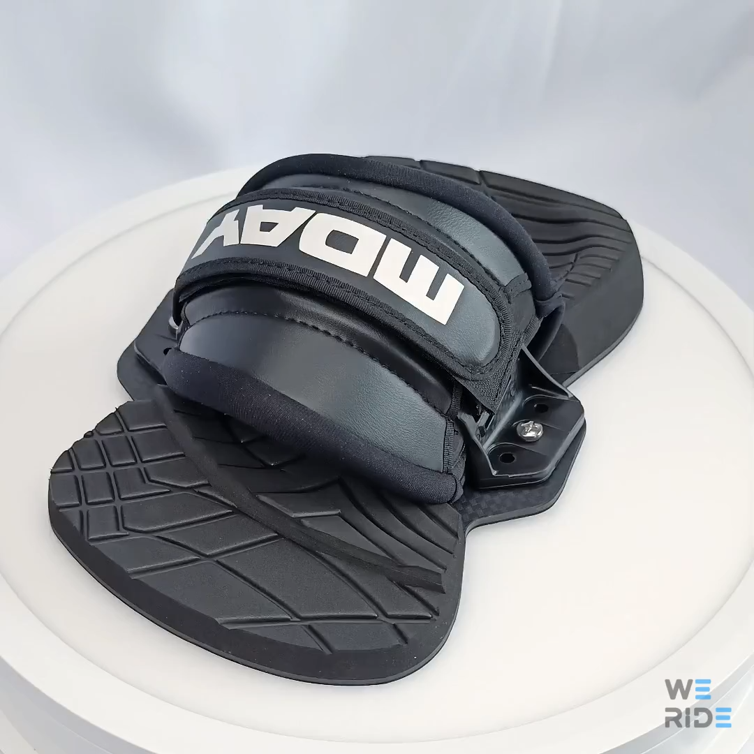 Падсы для кайтборда Mday с возможностью регулировки угла установки и положения петель относительно самих креплений под универсальный размер ноги. Максимальный комфорт и надежность фиксации ноги благодаря большой толщине пяточной части падсы, супинатору в центральной и упору для пальцев в передней. Эти крепления для кайтборда имеют не высокую стоимость по сравнению с импортными аналогами.